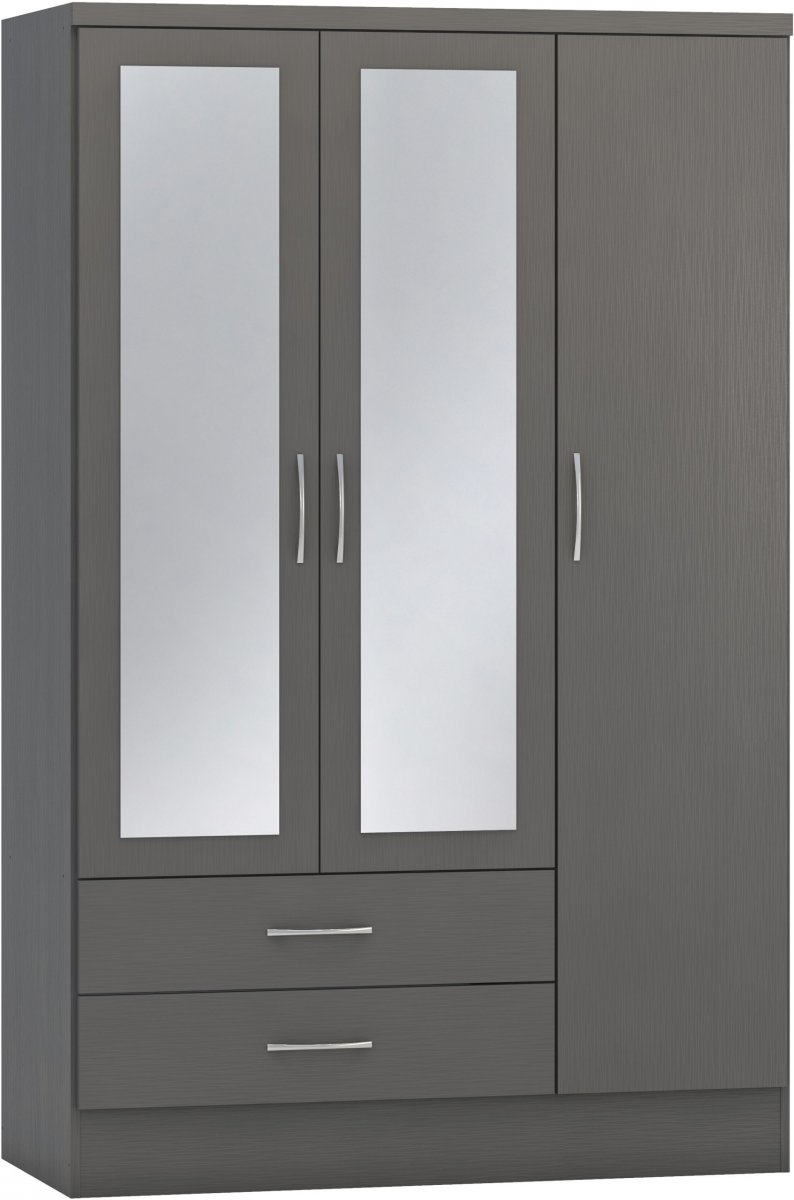 Nevada 3 Door 2 Drawer Mirrored Wardrobe 1.2m - 3D Effect Grey