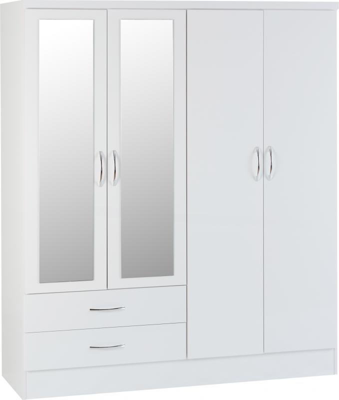 Nevada 4 Door 2 Drawer Mirrored Wardrobe 1.5m - White Gloss